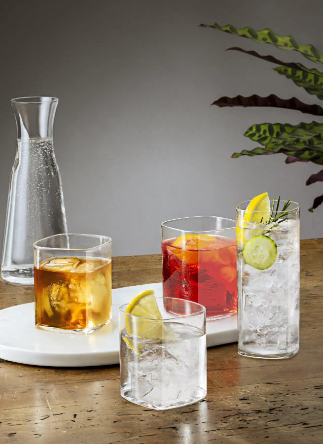 Voeg een vleugje Italiaanse elegantie toe aan elke tafelsetting met deze exclusieve set glazen van een gerenommeerd Noord-Italiaans merk. Het moderne, vierkante ontwerp en het extra heldere kristalglas zorgen voor een luxueuze uitstraling en optimale presentatie van aperitieven, frisdranken of cocktails. Dankzij het gebruik van geavanceerd SON.hyx-kristalglas zijn de glazen kras- en breukbestendig, licht van gewicht en geschikt voor intensief dagelijks gebruik. Zelfs na veelvuldig reinigen in de vaatwasser behouden zij hun schitterende glans. Ideaal voor wie waarde hecht aan kwaliteit, duurzaamheid en een tijdloos design. Een stijlvolle keuze voor elke gelegenheid.